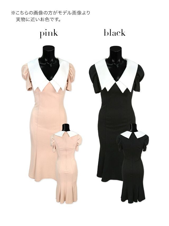 ビッグカラー半袖パフスリーブマーメイドエレガント膝丈ドレスのカラーバリエーション