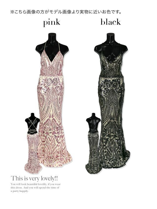 [LA直輸入] 総スパンコール刺繍ゴージャスキャミソールマーメイドロングドレス (Sサイズ~Lサイズ) (みゆう/キャバドレス着用)