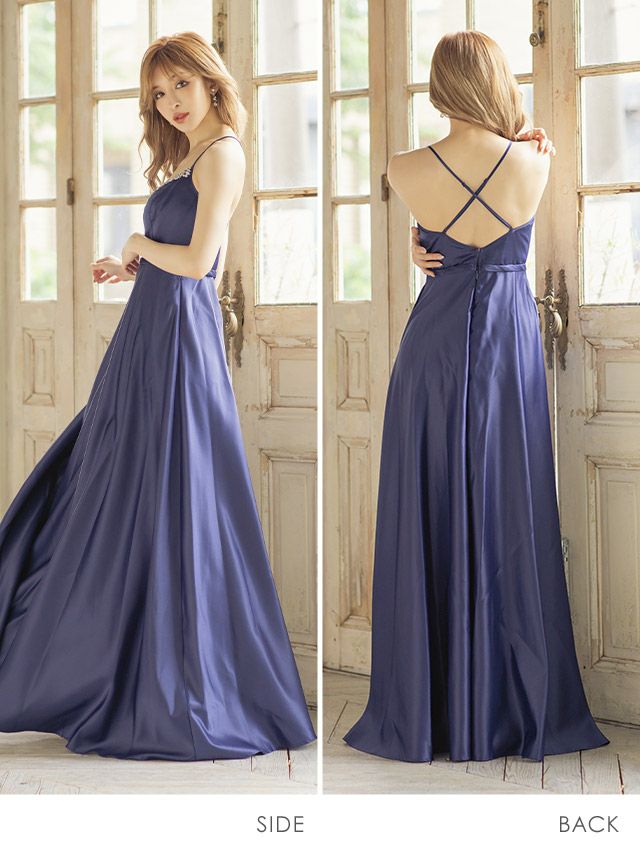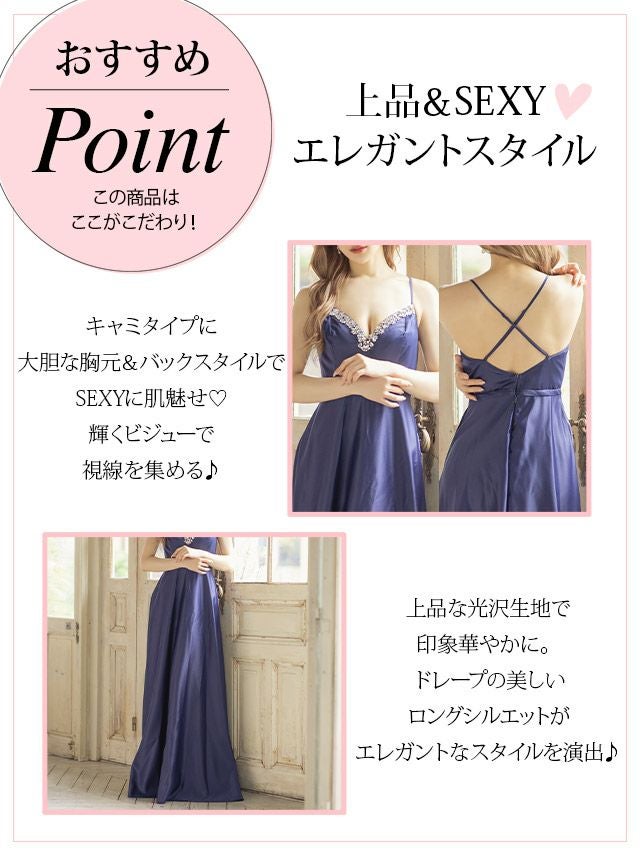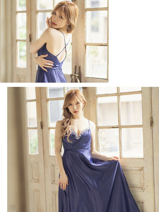 4. LA直輸入 デコルテビジューキャミソールバースデーAラインバースデーロングドレス (Sサイズ~Lサイズ) (ゆんころ/キャバドレス着用)