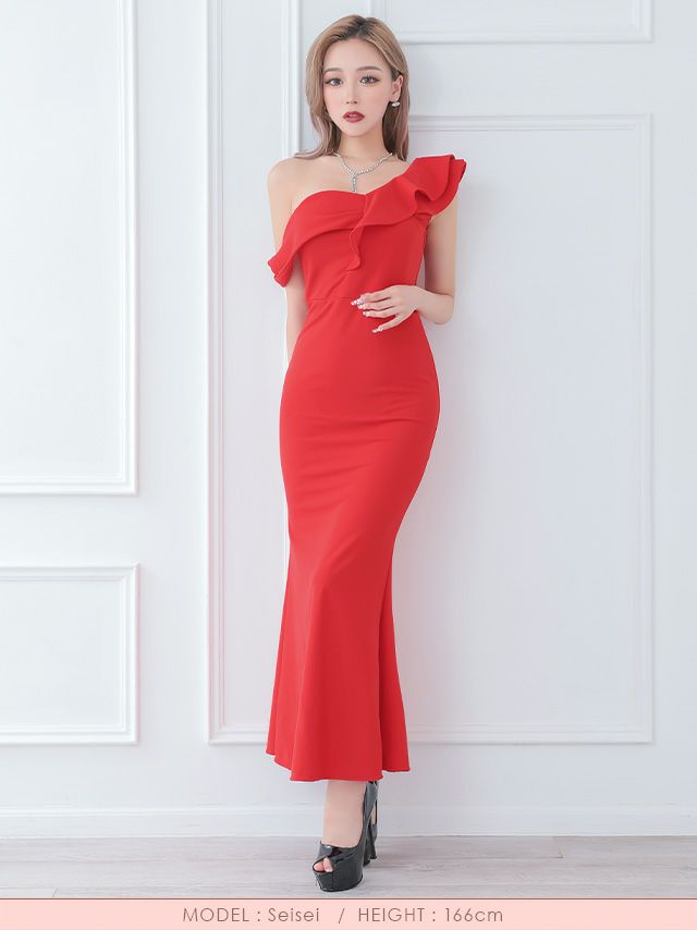 5. [SALE]ワンショルダーフリルシンプルプチプラタイトロングドレス (Sサイズ~XLサイズ)(せいせい/キャバドレス着用)[myMinette/マイミネット]