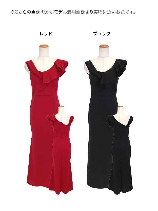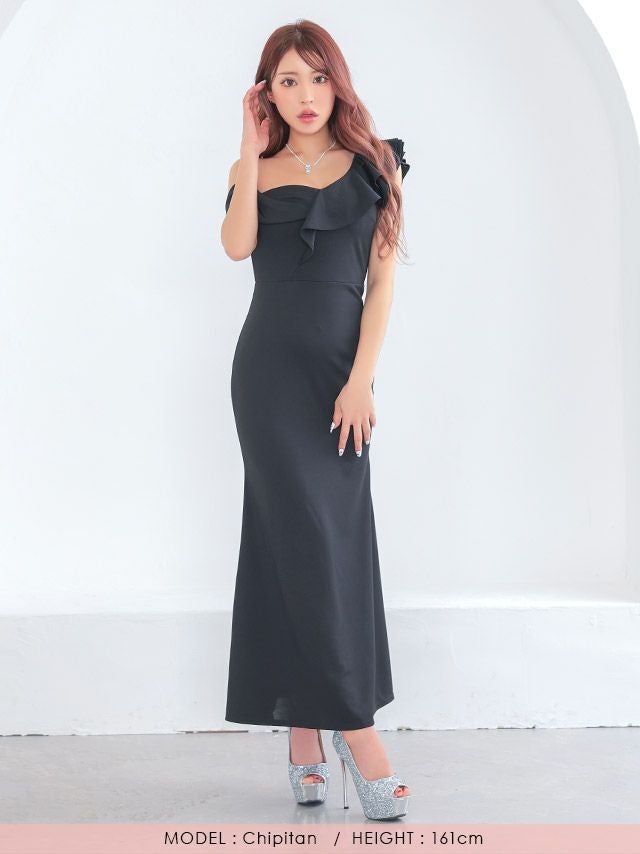 [SALE]ワンカラー フリル ノースリーブ プチプラ タイト ロングドレス(Sサイズ~XLサイズ)(ちぴたん/キャバドレス着用)[myMinette/マイミネット]