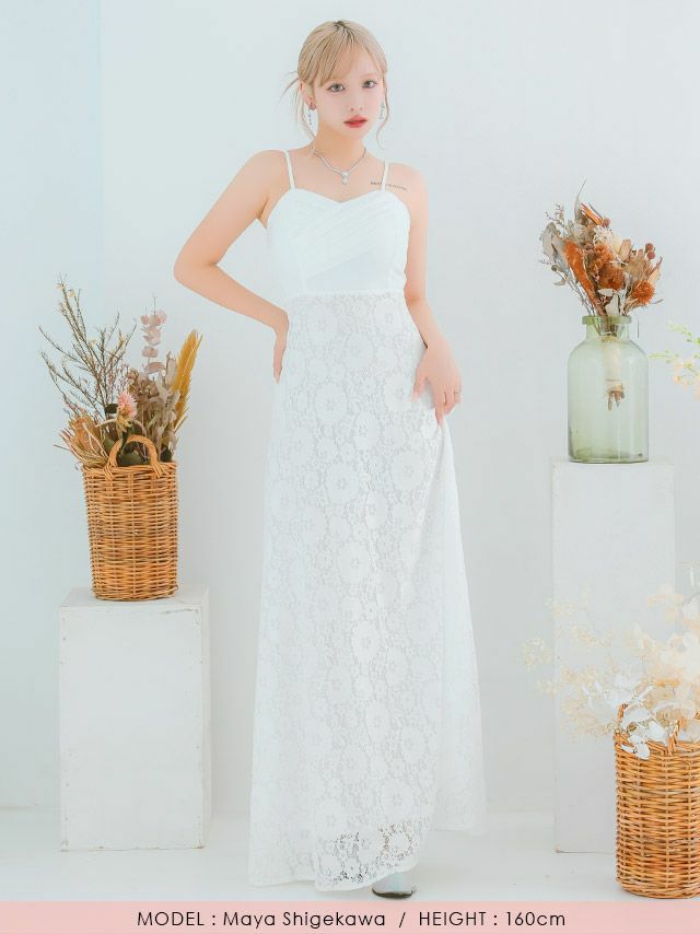 5. [アウトレット] キャミソールカシュクール風クロス切り替えフラワーレースAラインロングドレス (Sサイズ~XXXLサイズ) (重川茉弥/キャバドレス着用) [Tika/ティカ]