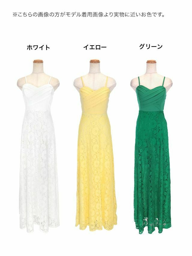 キャミソールカシュクール風クロス切り替えフラワーレースAラインロングドレスのカラー