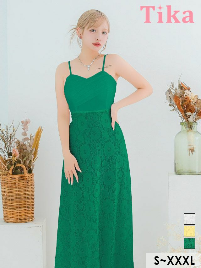 キャバドレス 安い 激安 ミニ丈 キャバクラ クラブ ラウンジ 【キャミソールカシュクール風クロス切り替えフラワーレースAラインロングドレス (Sサイズ~XXXLサイズ) (重川茉弥/キャバドレス着用)[Tika/ティカ]】 プチプラドレス