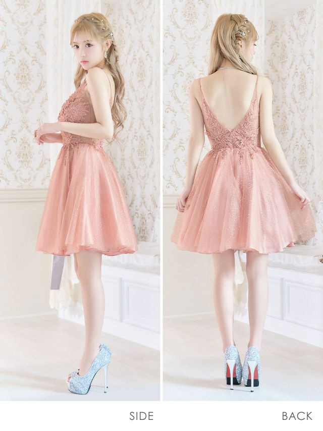 4. LA直輸入シースルーキラキラレース フリルバースデーキャミソールフレアミニドレス(XSサイズ/Sサイズ) (聖菜/キャバドレス着用)[Tika/ティカ]