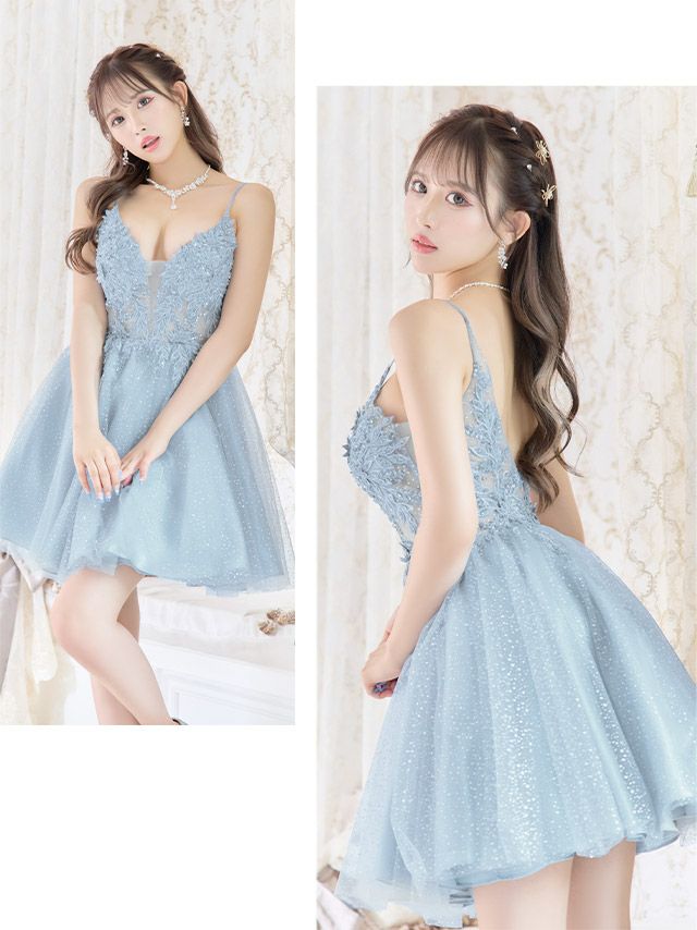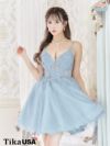 3. LA直輸入シースルーキラキラレース フリルバースデーキャミソールフレアミニドレス(XSサイズ/Sサイズ) (聖菜/キャバドレス着用)[Tika/ティカ]