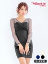 [SALE]ストライプ 長袖 シースルー タイト 胸元クロスデザイン ミニドレス (Sサイズ〜XXXLサイズ)(ちぴたん/キャバドレス着用)[myMinette/マイミネット]