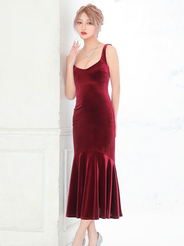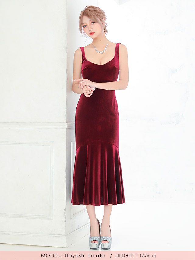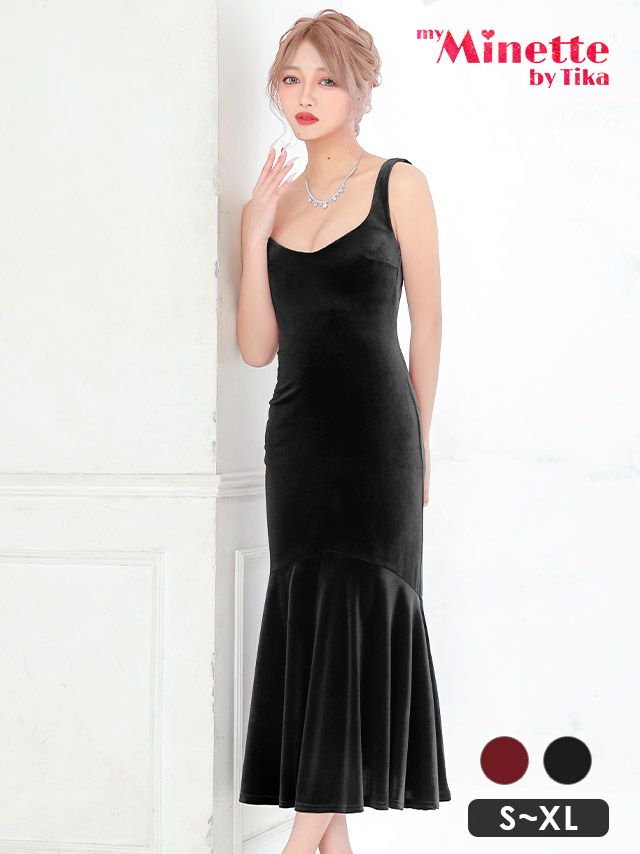 3. [SALE]ノースリーブベロアタイトマーメイドプチプラ膝丈ドレス (S~XLサイズ) (林姫奈妙/キャバドレス着用)[myMinette/マイミネット]