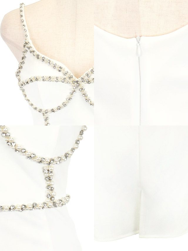 ゴージャスな存在感を放つ♪ [アウトレット] セクシー ハートカット キャミソール パールストーン タイトミニドレス (Sサイズ~Lサイズ) (せいせい/キャバドレス着用)[Tika/ティカ]