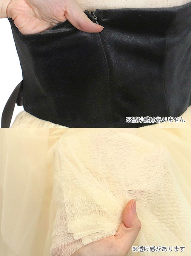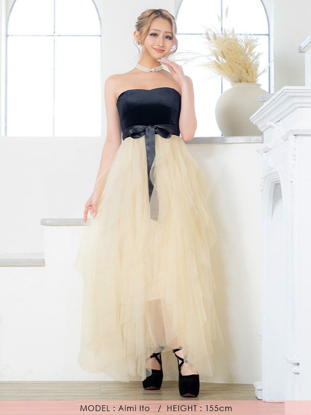 4. [アウトレット]ベアベロアウエストリボン切り替えランダムゴージャスチュール Aラインロングドレス (Sサイズ~XLサイズ) (伊藤愛依海着用)[Tika/ティカ]