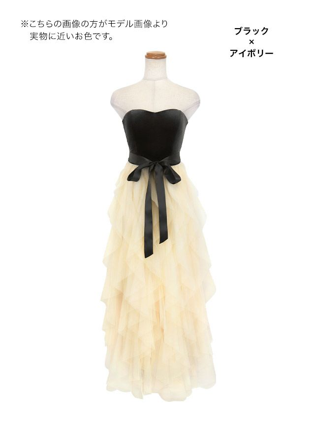 5. [アウトレット]ベアベロアウエストリボン切り替えランダムゴージャスチュール Aラインロングドレス (Sサイズ~XLサイズ) (伊藤愛依海着用)[Tika/ティカ]