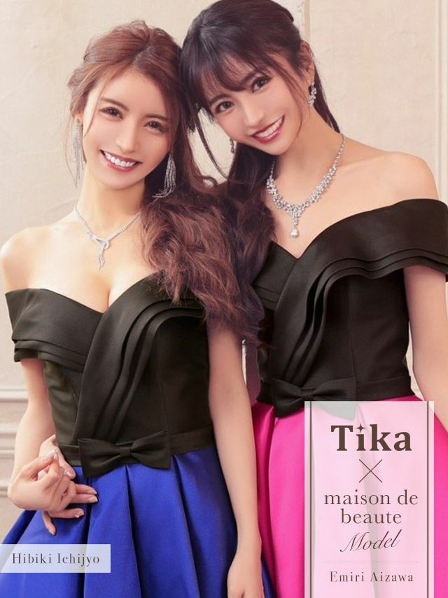 3. オフショルダーウエストリボンサテンハイウエスト切替フレアバースデーロングテールドレス (Sサイズ~Lサイズ) (愛沢えみり/キャバドレス着用)