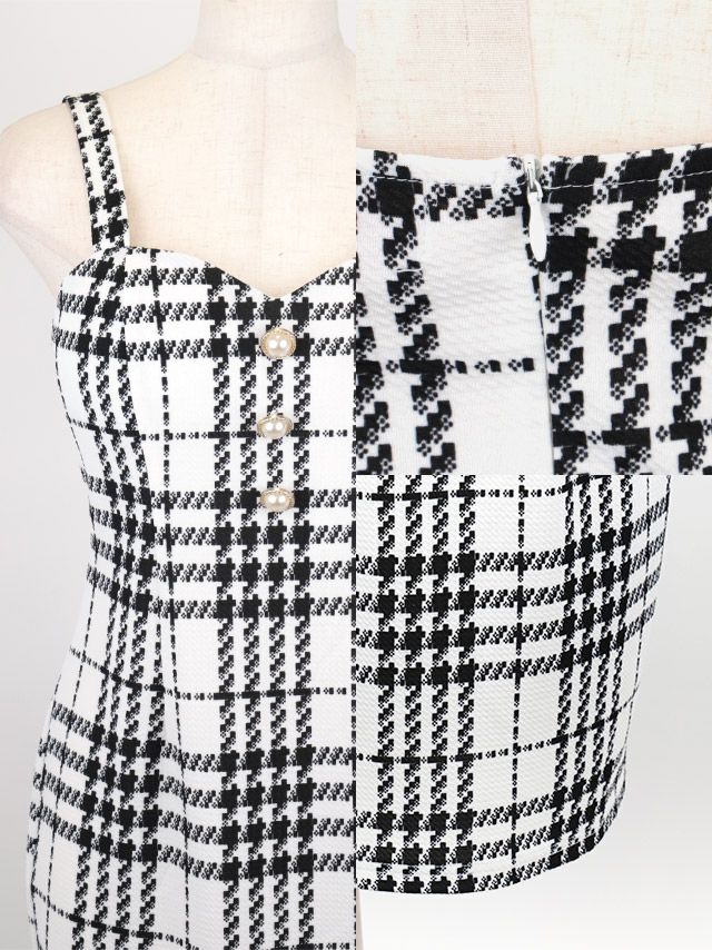5. [SALE][新作][再入荷]チェック柄キャミソールパールボタンタイトミニドレス(Sサイズ~XXLサイズ)(ちぴたん れいたぴ/キャバドレス着用)[myMinette/マイミネット]