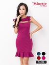 [SALE]バストカット裾フリルノースリーブタイトミニドレス (S~XLサイズ) (ちぴたん/キャバドレス着用) [myMinette/マイミネット]