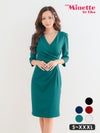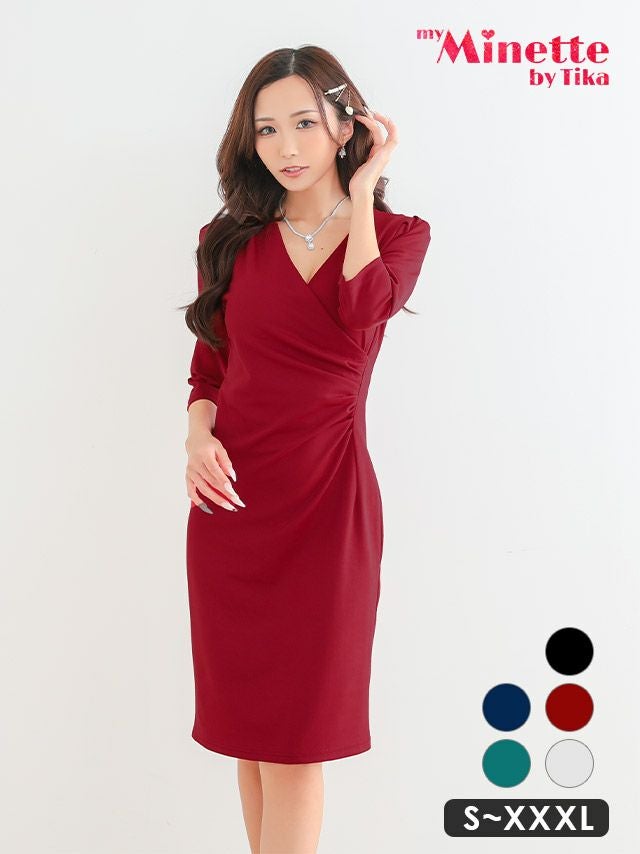 [SALE] 膝丈ドレス プチプラ 新人 タイト 袖あり グレー ワンカラー シンプル Vネック 7分袖 キャバドレス (あおぽん着用/S〜XXXLサイズ対応) | myMinette/マイミネット