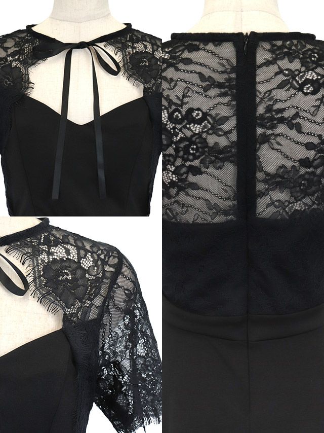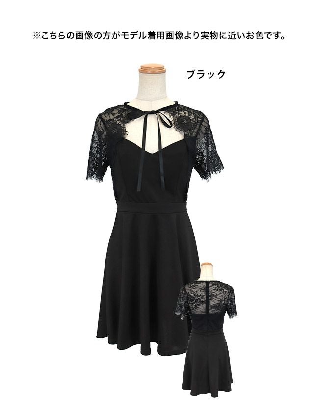 3. [SALE]ネックリボンスカラップレース半袖ワンカラープチプラフレアミニドレス (Mサイズ/Lサイズ)(なぎ/キャバドレス着用)[myMinette/マイミネット]