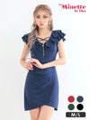 [SALE] ミニドレス プチプラ 新人 タイト セクシー 低身長 谷間 フリル袖 黒 キャバドレス (今井アンジェリカ着用/M~Lサイズ対応) | myMinette/マイミネット