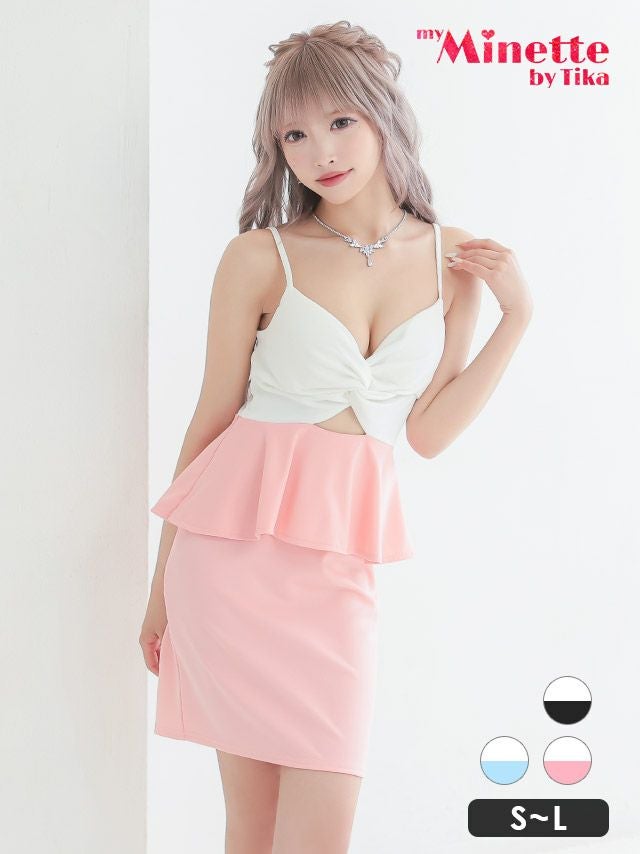 [SALE]バストギャザーペプラムデザインプチプラタイトミニドレス (Sサイズ~Lサイズ)(林姫奈妙/キャバドレス着用)[myMinette/マイミネット]