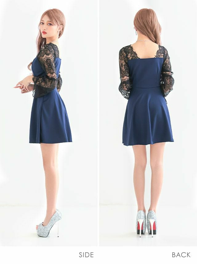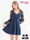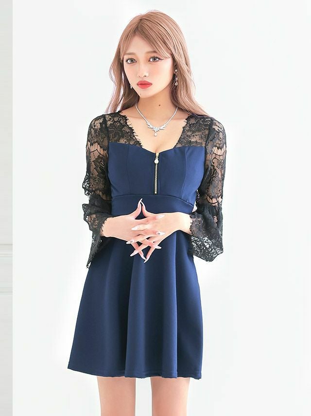 3. [SALE] ミニドレス プチプラ 新人 ジップ 長袖 ワンピース フレア セクシー レース 花柄 低身長 谷間 背中魅せ 黒 キャバドレス (林姫奈妙着用/M~Lサイズ対応) | myMinette/マイミネット