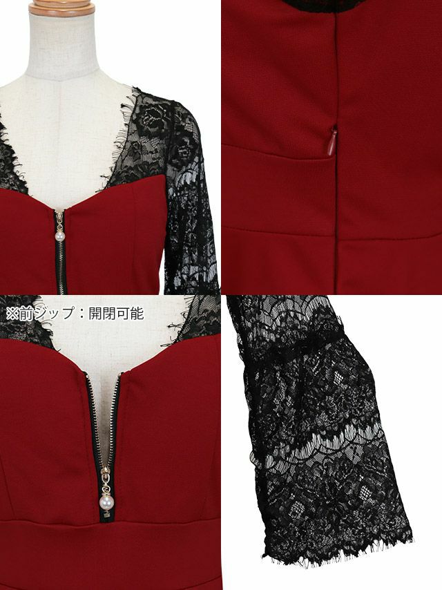 キャバドレス 安い 激安 ミニ丈 キャバクラ クラブ ラウンジ 長袖 ブラック レース フロント ジップ プチプラ フレア ミニ ドレス プチプラドレス