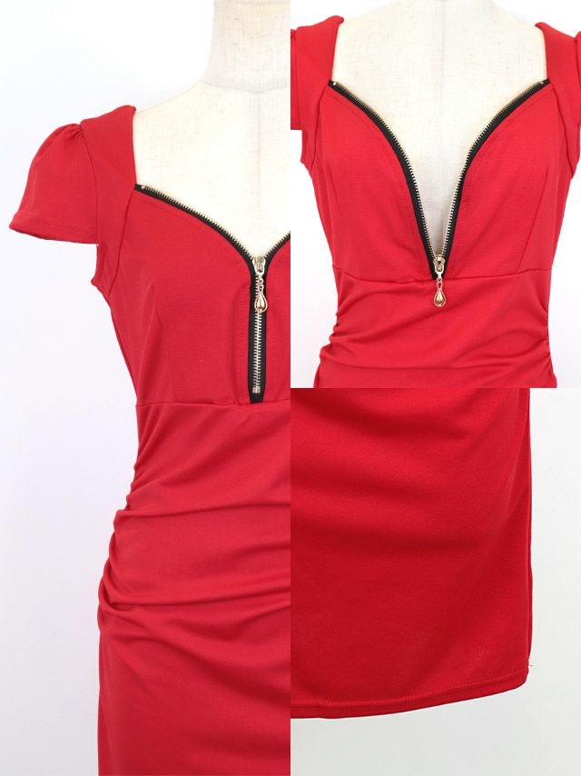 5. [SALE][再入荷] ミニドレス 半袖 バストジップ バイカラー ギャザー タイト キャバドレス (ちぴたん着用)[th-md8002a]