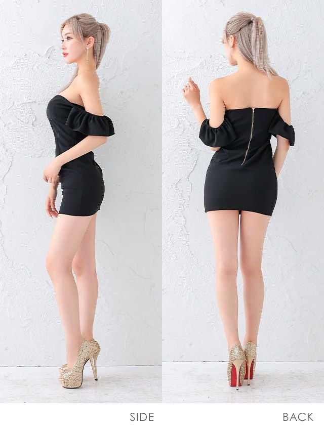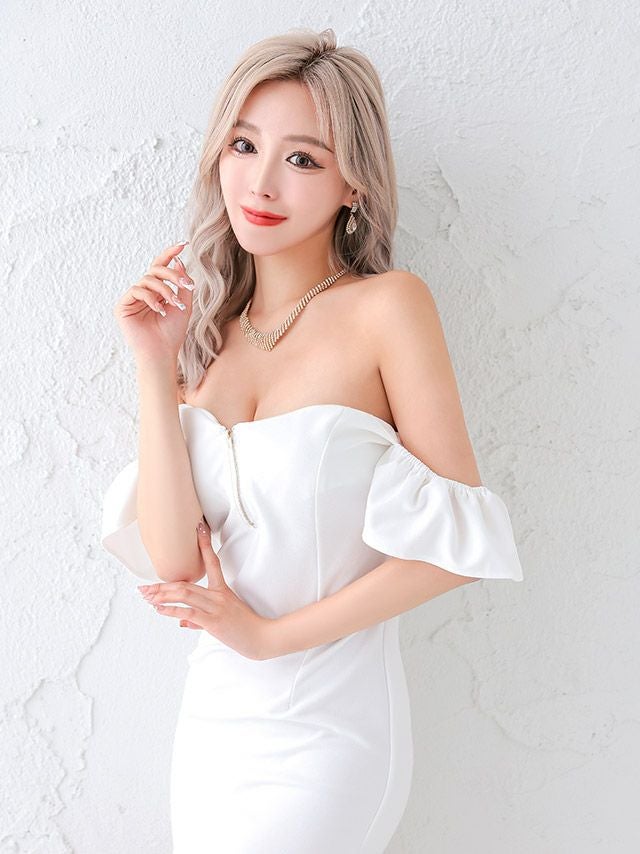 5. [SALE] ミニドレス プチプラ ギャル タイト ジップ オフショル セクシー ノースリーブ ラウンジ 低身長 谷間 背中魅せ 2way フリル袖 白 キャバドレス (せいせい着用/Mサイズ対応) | myMinette/マイミネット