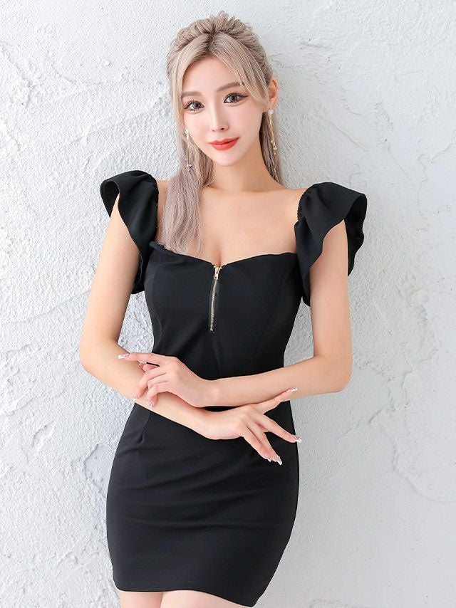キャバドレス 安い 激安 ミニ丈 キャバクラ クラブ ラウンジ フロントZIP 2Way 袖 タイト ミニドレス プチプラドレス