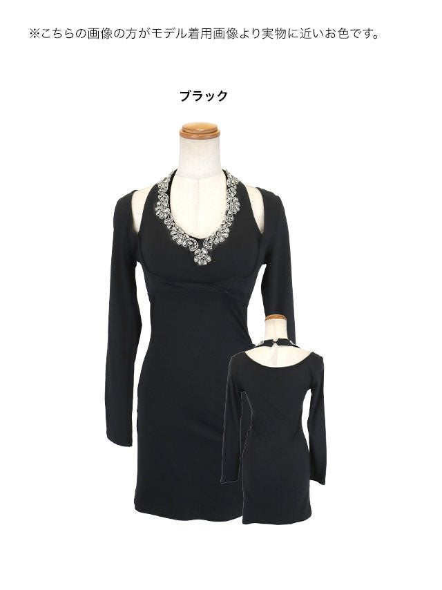 ビジュー長袖ホルターネックセクシータイトミニドレスのカラー