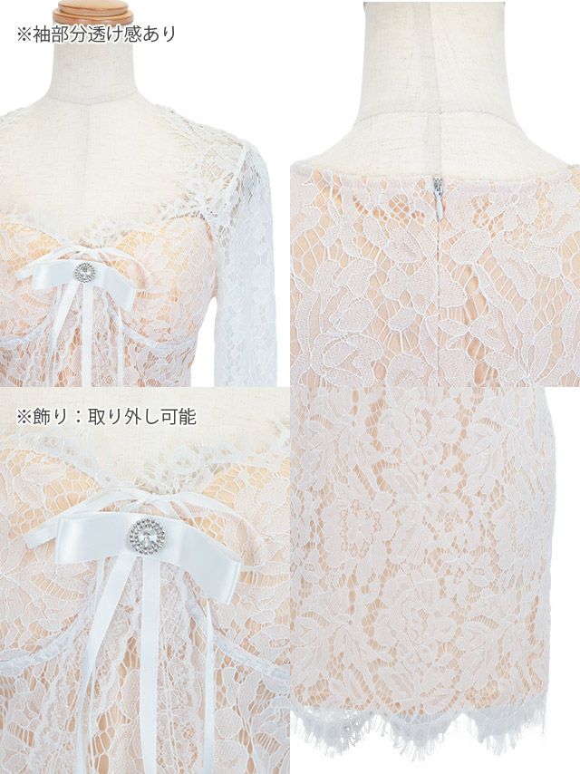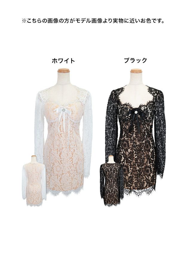 5. [SALE]フラワーレースエレガント長袖ビジューリボンプチプラタイトミニドレス (Mサイズ/Lサイズ)(林姫奈妙/キャバドレス着用)[myMinette/マイミネット]
