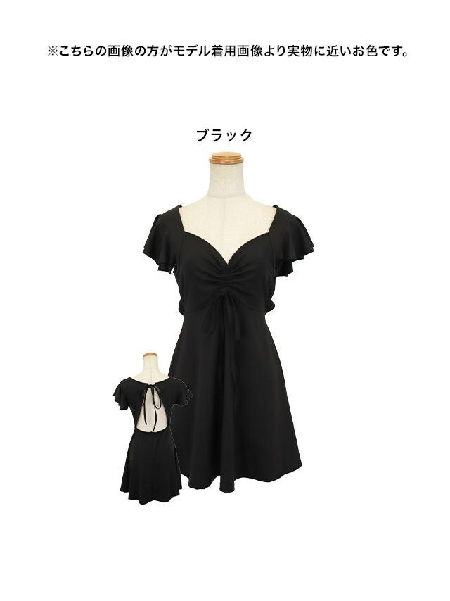 4. [SALE]半袖フリルワンカラープチプラフレアミニドレス (Mサイズ/Lサイズ)(なぎ/キャバドレス着用)[myMinette/マイミネット]