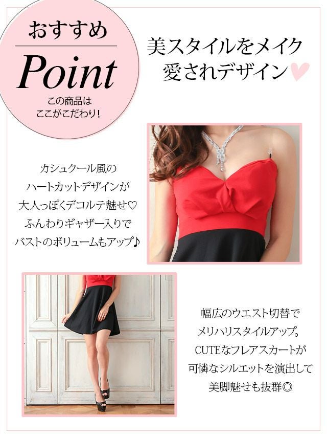 キャバドレス 安い 激安 ミニ丈 キャバクラ クラブ ラウンジ カシュクール風 バイカラー 袖なし ハイウエスト 切替フレア ミニドレス プチプラドレス
