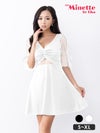 [SALE]ウエストカットリボンシースルー袖フレアミニドレス (S~XLサイズ) (れいたぴ/キャバドレス着用) [myMinette/マイミネット]