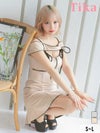5. [新作] Aライン ミニドレス 谷間 肩出し 二の腕カバー コードリボン ジップ ウエストカットアウト シンプル パイピングデザイン (聖菜着用) [Tika/ティカ]