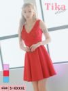 4. [アウトレット]ノースリーブ Vネック刺繍 ワンカラー フレアミニドレス (Sサイズ~XXXXLサイズ) (PyunA./キャバドレス着用)[Tika/ティカ]