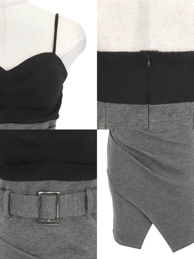 バイカラー ウエストベルト セクシー ギャザー キャミソール タイトミニドレス