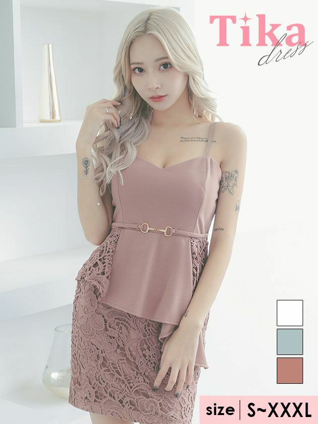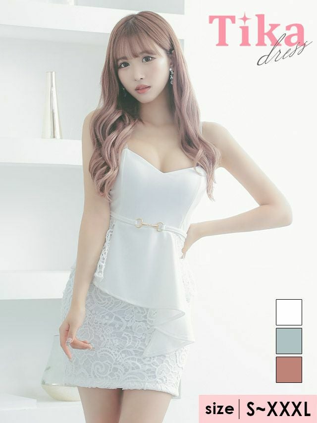 3. キャミソールアシメペプラムベルト切り替えケミカルフラワーレースタイトミニドレス (Sサイズ~XXXLサイズ) (一条響/キャバドレス着用) [Tika/ティカ]