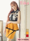5. フラワープリントネックリボンハートカットウエスト切替パイピングペプラムノースリーブタイトミニドレス (Sサイズ~XXXXLサイズ) (戦慄かなの/キャバドレス着用) [Tika/ティカ]