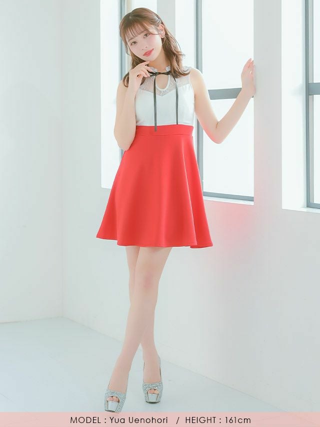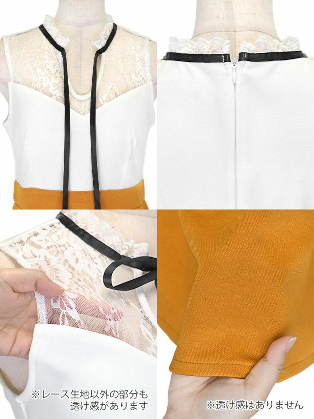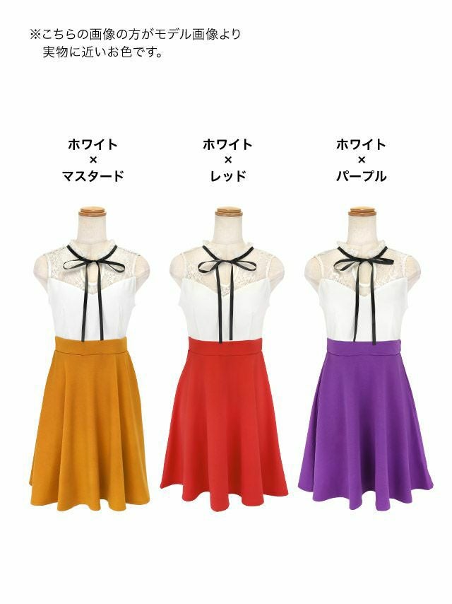ノースリーブレースネックリボンバイカラー切り替えフレアミニドレス