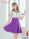 5. [アウトレット]ノースリーブ レース ネックリボン バイカラー 切り替え フレアミニドレス (Sサイズ~ XXXXLサイズ) (上ノ堀結愛/キャバドレス着用) [Tika/ティカ]