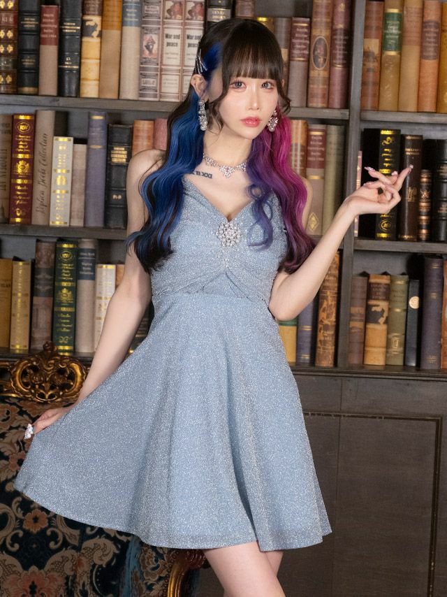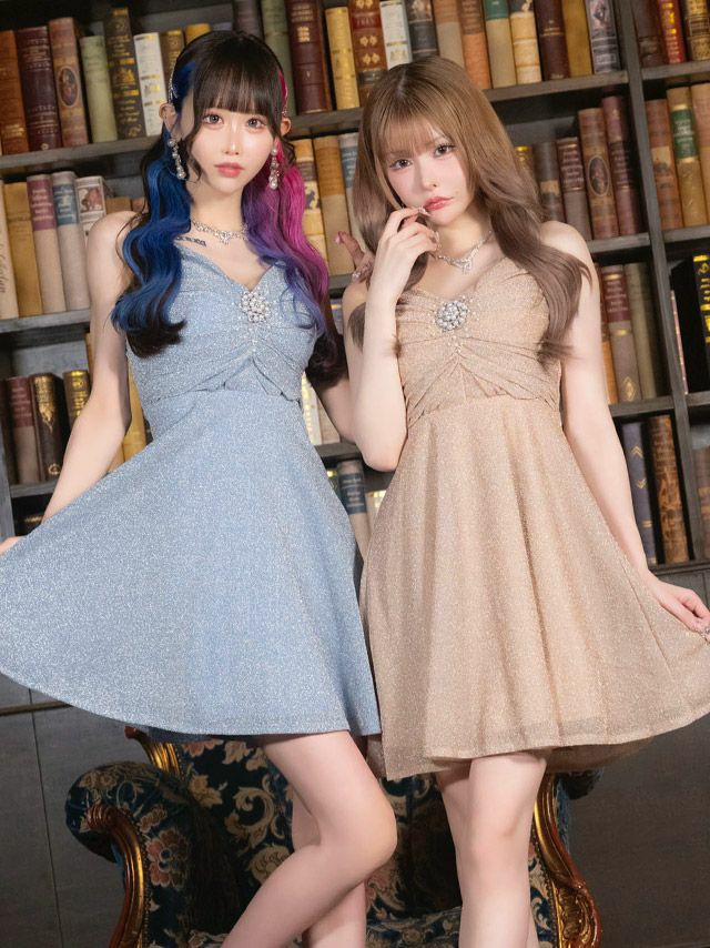 5. キャミソール ギャザー パールビジュー ラメ フレアミニドレス (Sサイズ~XXXXLサイズ) (戦慄かなの ゆりにゃ/キャバドレス着用) [Tika/ティカ]