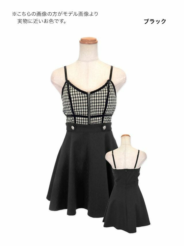 ツイードギンガムチェック柄バストジップキャミソールフレアミニドレスの商品画像1枚目