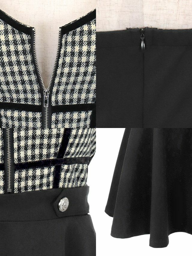 ツイードギンガムチェック柄バストジップキャミソールフレアミニドレスの商品画像4枚目