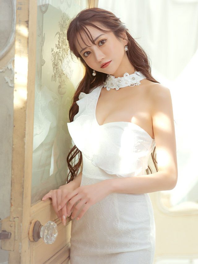 チョーカー風デザインと立体フラワーレースでお顔周りも華やかに♪