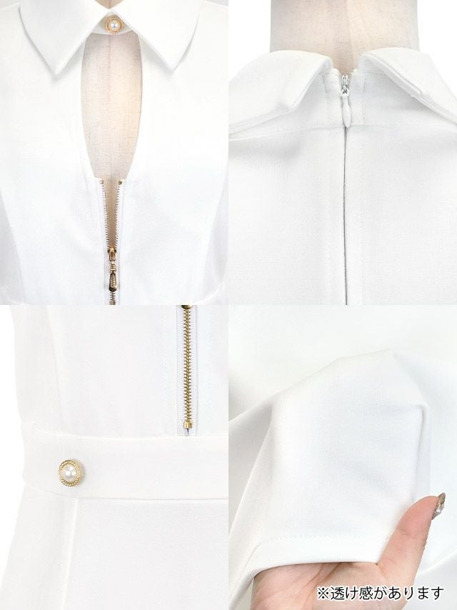 4. [新作] タイトミニドレス 谷間 シンプル ノースリーブ 襟付き バストカット ジップ ストレッチ ブラジャーのまま (せいせい着用) [tk-md213679] [Tika/ティカ]