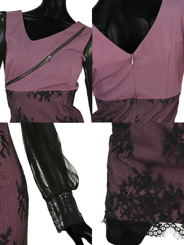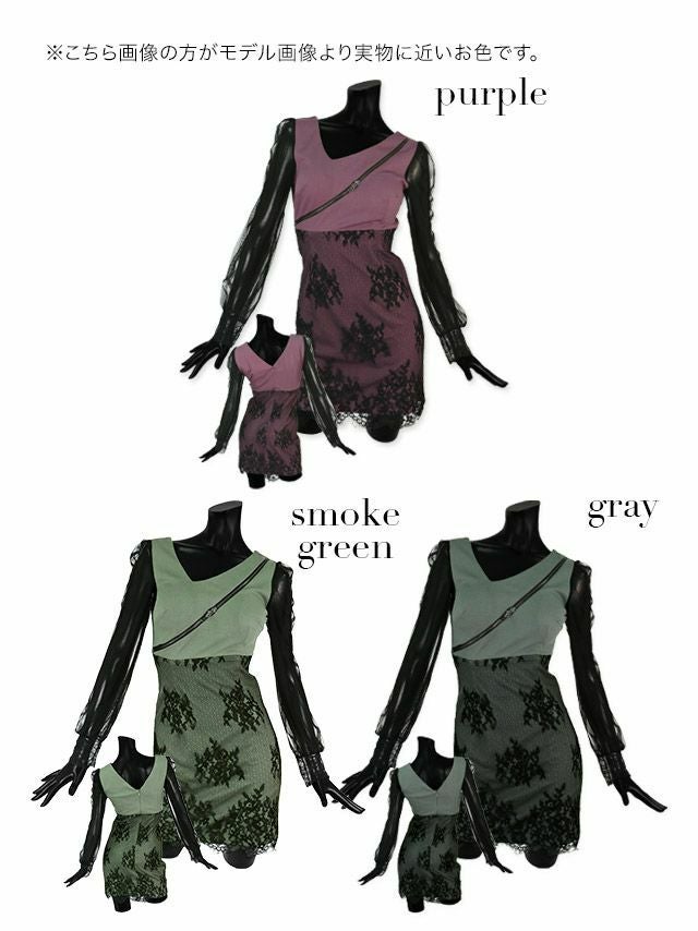 上品な肌見せが叶う♪ シアー長袖 袖ありバストジッパーウエスト切替フラワーレースタイトミニドレス (Sサイズ~XLサイズ) (一条響/キャバドレス着用) [Tika/ティカ]