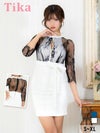 レースの透け感が美しい♪ タイトミニドレス 谷間 レース 大人 背中見せ ハイネック ストレッチ 袖あり 七分袖 ウエストリボン ジップ (MIYABI着用) [Tika/ティカ]