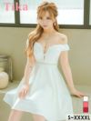 5. [新作] フラワー刺繍バストシアーオフショルダーウエストビジューフレアミニドレス (Sサイズ~XXXXLサイズ) (PyunA./キャバドレス着用)[Tika/ティカ]