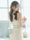4. キャミソール リボン パイピング パールボタン ボックスプリーツ フレアミニドレス (Sサイズ~XLサイズ) (聖菜/キャバドレス着用) [Tika/ティカ]