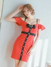 着痩せを計算されたお洒落ドレス♪ [アウトレット] 肩あきパイピングフロントボタンタイトミニドレス (Sサイズ~XLサイズ) (聖菜 PyunA./キャバドレス着用)