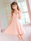 シアーリボンオフショルダーバストカットアウトウエストビジューラインフレアミニドレスのフロント